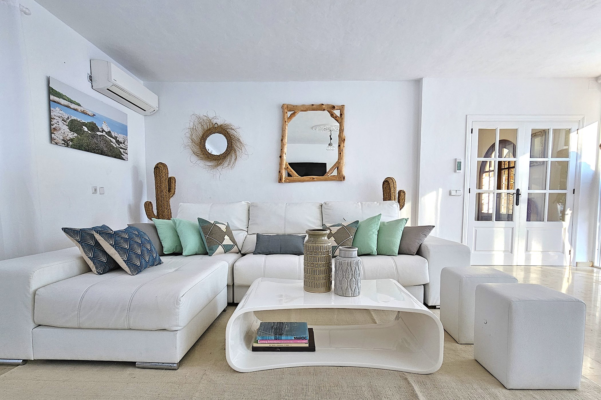 Perched on a stunning hillside overlooking Cala Jondal beach, renowned for its Blue Marlin beach club, Villa Evelyn offers an elegant and contemporary home with breathtaking views of the sparkling turquoise Mediterranean waters. Surrounded by pine trees, this private oasis provides the perfect setting for relaxation and tranquility.