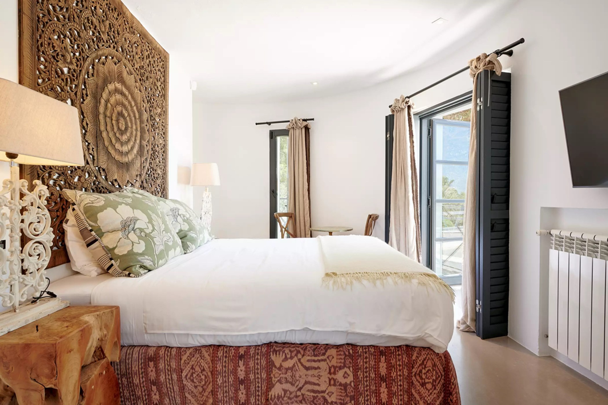 As you enter Villa Heidi, you will instantly feel at home in the wide, spacious, and inviting bright open-plan lounge, dining room, and fully equipped modern kitchen. Floor-to-ceiling glass doors flood the house with the warming natural light of the Ibizan sun, creating a bright and airy atmosphere. The all-white theme throughout the house adds to the clean and stylish charm, while contemporary art pieces add pops of color. The refined soft furnishings have been carefully selected to complement the elegance of the house.