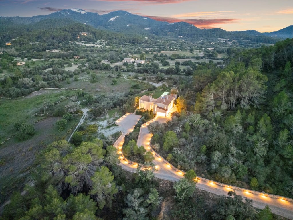 Nestled in over 60,000 square meters of land, Finca Es Castell provides ample privacy and stunning views of the rolling landscape of southeast Mallorca. For those seeking even more space and privacy, there is an option to acquire an additional ten hectares of adjoining land, including an entire hillside, offering exclusive control over the surrounding mountain landscape.