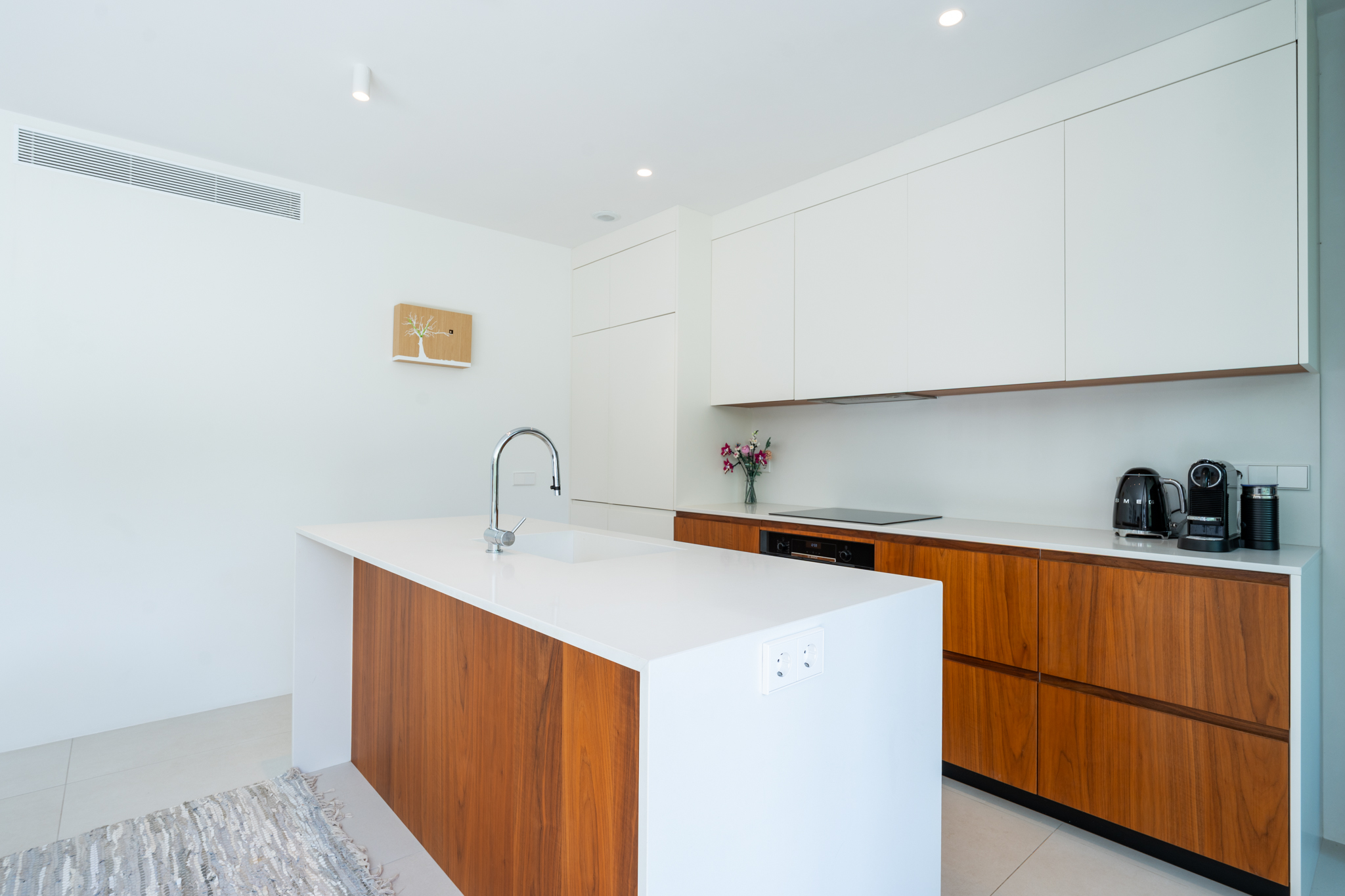 The open-plan kitchen is equipped with top-quality appliances and finishes, combining functionality with style. Every detail has been carefully curated to evoke harmony and comfort, from the warm-toned flooring to the built-in wardrobes that optimize storage space without compromising on design. Air conditioning and underfloor heating ensure year-round comfort, while soundproof glazing provides peace and privacy in the lively surroundings of Ibiza's marina district.
